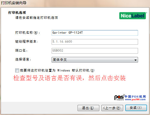 六、確認(rèn)打印機(jī)型號及語言(如下圖安裝的是GP-1124T,簡體中文版的驅(qū)動),然后點擊“安裝”;