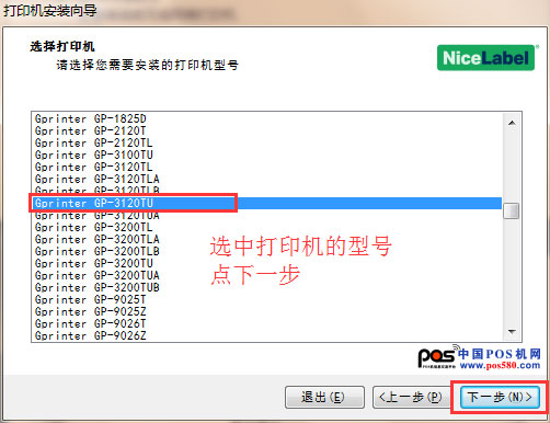 三、選擇您需要安裝驅(qū)動的條碼打印機(jī)型號,點擊“下一步”;