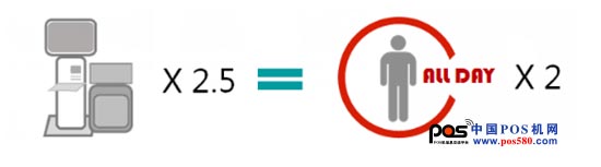 2.5臺(tái)自助POS=1個(gè)收銀通道=2個(gè)人工收銀員;