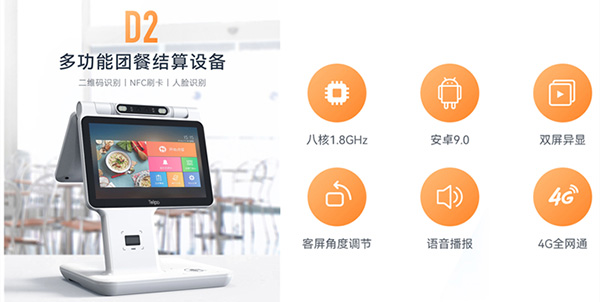 核心提示天波智能團(tuán)餐收銀終端D2是一款人臉識別點(diǎn)餐消費(fèi)一體機(jī) 支持支付寶團(tuán)餐補(bǔ)貼。天波智能團(tuán)餐收銀終端D2采用可旋轉(zhuǎn)的雙目活體攝像頭和可旋轉(zhuǎn)的屏幕,方便不用高度和不同場景使用,具備一維/二維碼識別、人臉識別、刷卡支付等功能,還支持語音播報(bào),支持4G全網(wǎng)通/WIFI /藍(lán)牙4.0/以太網(wǎng)多種通訊方式,有豐富的外部接口,支持二次開發(fā)。