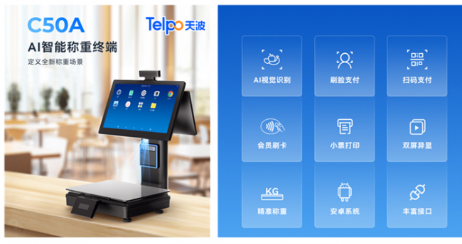 核心提示天波零食店AI識(shí)別電子秤C50A 加入AI識(shí)別攝像頭,算力強(qiáng),可支持生鮮商品AI識(shí)別,圖像識(shí)別精度高速度快。更可選支付寶3D結(jié)構(gòu)光人臉識(shí)別攝像頭,可支持刷臉支付。天波零售店AI識(shí)別電子秤C50A 采用鋼化玻璃秤盤和專業(yè)傳感器,防潮防蟲、準(zhǔn)確稱重,配置可調(diào)節(jié)角度的15.6英寸觸摸主屏和10.1英寸觸摸客屏,使用體驗(yàn)更佳。天波零食店AI識(shí)別電子秤C50A可選58mm熱敏打印機(jī),掃碼和刷卡模塊,功能選擇性強(qiáng),提供SDK接口,支持二次開發(fā)。